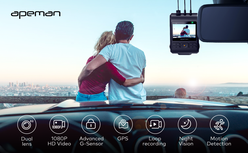 Built-in G-sensor, automatically captures unexpected driving incidents and lock the video during collision.