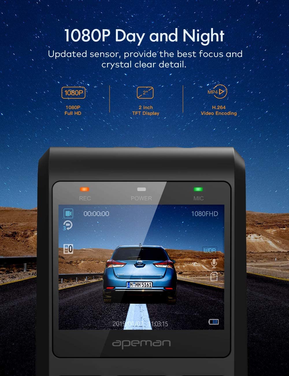 Wide-angle shooting broadens the field of vision.There are no dead corners around, bringing you a new experience of driving safety.