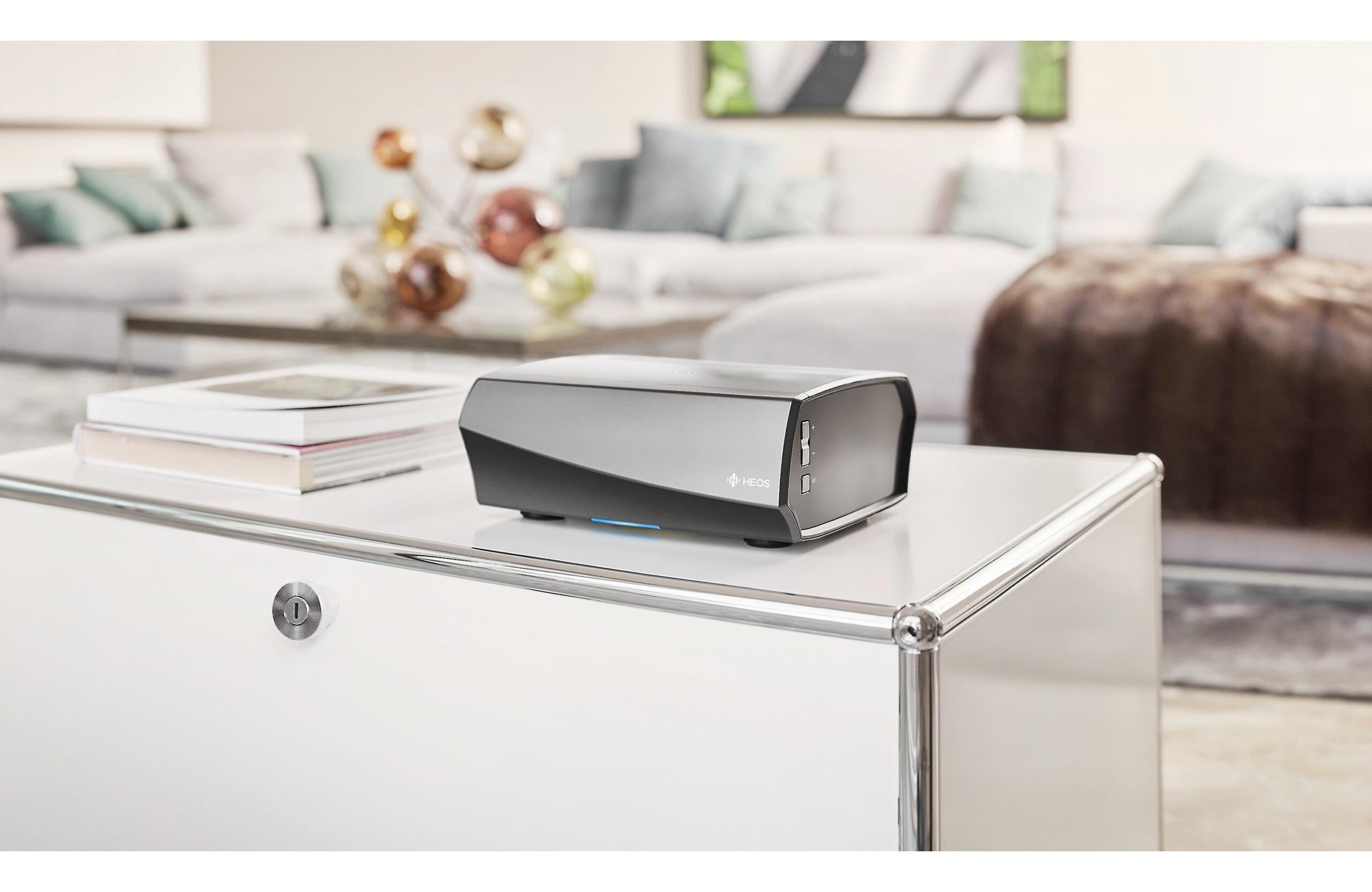 Add multi-room audio functionality to your speakers with the Denon HEOS Amp Series 2 Wireless Amplifier. This amplifier connects to a pair of stereo speakers and a subwoofer, delivering up to 100W per channel thanks to its Class-D amp and is capable of driving speakers rated down to 4 Ohms. It connects to your home network via Ethernet and 802.11ac Wi-Fi, mobile devices via Bluetooth and a 3.5mm stereo jack, digital sources via optical, and legacy devices via RCA. A USB port lets you connect a thumb drive or charge your mobile device. The Amp is controlled via a free app for Android and iOS or via the volume and mute controls on the side panel. The app also lets you play tracks from your smartphone or streaming sources with high-resolution audio support. The HEOS Amp can also be voice-controlled via your Amazon Alexa, Google Assistant, Siri, or Josh.ai ecosystem.
